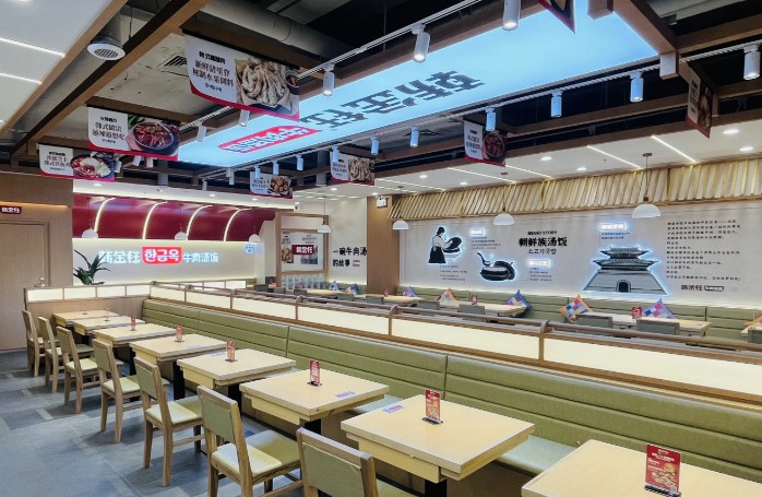 6、统一装修:韩金钰牛肉汤饭为加盟店提供整体设计装修方案,加盟商进行装修。