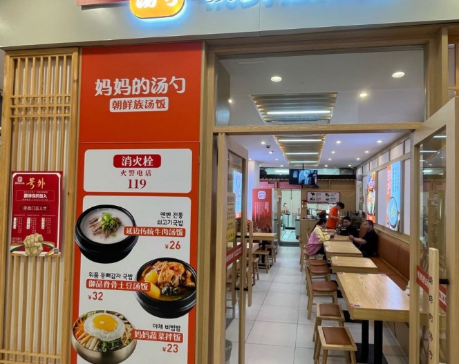 妈妈的汤勺朝鲜拌饭品牌要求统一的店面装修风格,且公司总部会在店铺装修时进行指导,派专业装修团队施工。