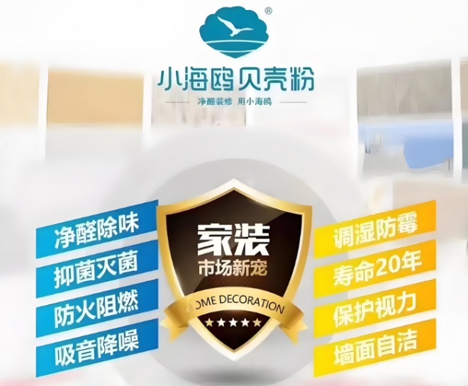 小海鸥贝壳粉具有装饰效果理想,既可做乳胶漆的平涂效果,又能做类似硅藻泥的花样造型。具有实用性能优异,维护保养方便等特点。是集时尚、实用、环保、健康等优点于一身的现代化高科技产品。与市场上传统墙体壁材相比,具有性价比极高的市场竞争力。尤其是它的吸附能力、分解甲醛、抑制病毒净化空气等诸多特点,是家装、办公室、写字楼、酒店、KTV等的理想选择对象,应用前景广阔。